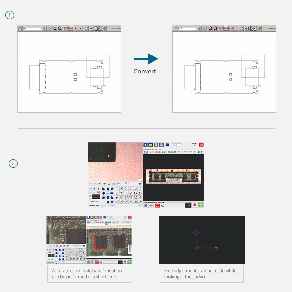 - DXF download editing function: create coating trajectories based on imported drawing data (DXF) and edit/change the order of points as needed.